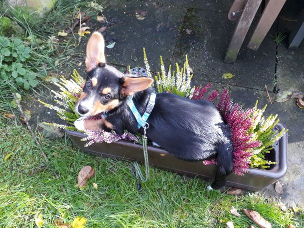 Oktober 2021: Immer schön, wenn man Hilfe hat bei der Gartenarbeit. Bonnie, die diesjährige Heide-Prinzessin!